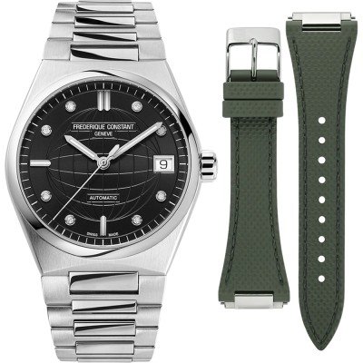 Cette montre pour femmes Highlife est conçue pour offrir à la fois style et polyvalence aux femmes modernes. Il s'agit d'une montre tendance de 34 mm dotée d'un bracelet en acier intégré, qui peut facilement être remplacé par le bracelet en caoutchouc fourni avec l'ensemble. Le cadran brillant et soleillé est orné d'un globe gaufré, de huit indicateurs d'heures en diamant et d'un guichet de date à trois heures. Le mouvement automatique FC-303 (basé sur le SW200) qui équipe cette magnifique montre dispose d'une réserve de marche de 38 heures. La montre pour femmes Highlife vit vraiment sa vie la plus belle, restant chic, mais un peu impertinente en même temps. L'ensemble constitue un cadeau parfait pour une femme à l'œil avisé et au style de vie moderne et actif.