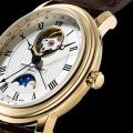 La montre Frederique Constant Classics Heart Beat Moonphase révèle son échappement en mouvement continu avec une fenêtre sur son cœur à 12 heures. Elle est équilibrée par un délicat affichage des phases de lune à 6 heures sur le cadran au décor élaboré : un décor guilloché classique Clous de Paris, des index en chiffres romains, de délicates aiguilles Breguet et un pointeur de date. La montre est animée par un mouvement automatique FC-335 basé sur le Sellita SW200, avec une réserve de marche de 38 heures. La haute horlogerie rencontre le style classique et le mouvement moderne dans cette magnifique montre.