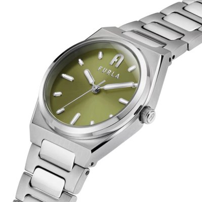 Cette montre Furla a un boîtier Inox 30 mm en diamètre et est équipée d'un bracelet Inox. Le boîtier contient un mouvement Miyota et la montre est dotée d'un cristal Minéral..