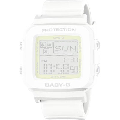 Ce bracelet de montre G-Shockest fait de résine et est attaché à la montre au moyen de À glisser. Le bracelet a une taille de 20 mm et se ferme au moyen d'un boucle. Le bracelet n'a pas de support droit, ce qui signifie que ce bracelet convient uniquement aux montres énumérées ci-dessous.