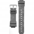 Ce bracelet de montre G-Shockest fait de résine et est attaché à la montre au moyen de Épingles à ressort. Le bracelet a une taille de 26 mm et se ferme au moyen d'un boucle. Le bracelet n'a pas de support droit, ce qui signifie que ce bracelet convient uniquement aux montres énumérées ci-dessous.