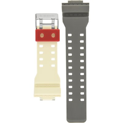Ce bracelet de montre G-Shockest fait de résine et est attaché à la montre au moyen de Épingles à ressort. Le bracelet a une taille de 29 mm et se ferme au moyen d'un boucle. Le bracelet n'a pas de support droit, ce qui signifie que ce bracelet convient uniquement aux montres énumérées ci-dessous.