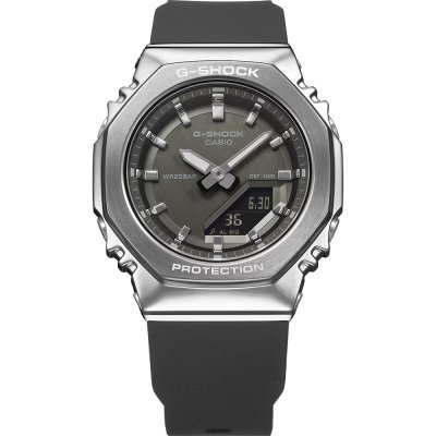 Cette montre G-Shock a un boîtier Acier inoxydable et plastique 40.5 mm en diamètre et est équipée d'un bracelet Plastique biosourcé. Le boîtier contient un mouvement Casio et la montre est dotée d'un cristal Minéral..
