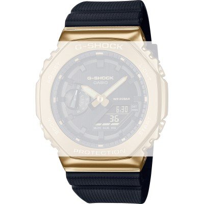 Ce bracelet de montre G-Shockest fait de résine et est attaché à la montre au moyen de Épingles à ressort à dégagement rapide. Le bracelet a une taille de 26 mm et se ferme au moyen d'un boucle. Le bracelet n'a pas de support droit, ce qui signifie que ce bracelet convient uniquement aux montres énumérées ci-dessous.