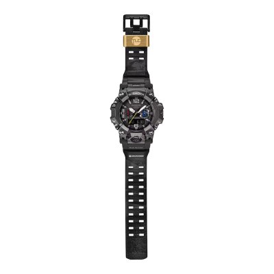 Cette montre G-Shock a un boîtier Acier inoxydable et carbone 56 mm en diamètre et est équipée d'un bracelet Résine. Le boîtier contient un mouvement Casio et la montre est dotée d'un cristal Saphire..