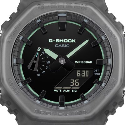 Cette montre G-Shock a un boîtier Résine renforcée de carbone 45.4 mm en diamètre et est équipée d'un bracelet Résine. Le boîtier contient un mouvement Casio et la montre est dotée d'un cristal Minéral..