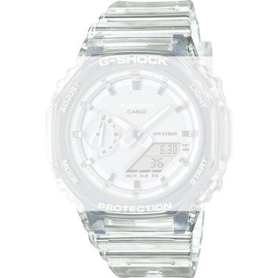 Ce bracelet de montre G-Shockest fait de résine et est attaché à la montre au moyen de Épingles à ressort à dégagement rapide. Le bracelet a une taille de 24 mm et se ferme au moyen d'un boucle. Le bracelet n'a pas de support droit, ce qui signifie que ce bracelet convient uniquement aux montres énumérées ci-dessous.