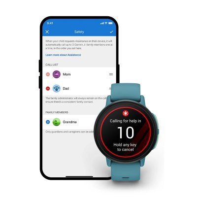 | Garmin Jr. App | Rappel d'enregistrement (vérification de l'emplacement), Stay Active Together (défis d'activités parents/enfants), Suivi de l’activité (pour les parents), L’activité ouvre la porte à l’aventure, Mode enfant |