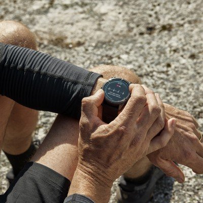 | Capteurs | Accéléromètre, Altimètre (barométrique / GPS), Capteur de lumière ambiante, Boussole, GLONASS, Galileo, GPS, Gyroscope, Moniteur de fréquence cardiaque (optique), Oxymètre (Ox de pouls), Thermomètre |