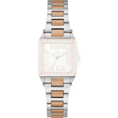 Ce bracelet de montre GCest fait de métal et est attaché à la montre au moyen de vis de selle. Le bracelet a une taille de 18 mm et se ferme au moyen d'un boucle papillon Invisible. Le bracelet n'a pas de support droit, ce qui signifie que ce bracelet convient uniquement aux montres énumérées ci-dessous.
