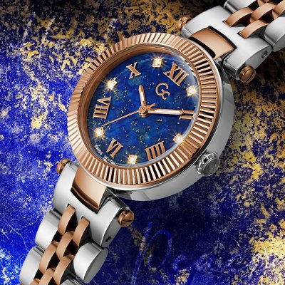 Cette montre GC a un boîtier Inox 28 mm en diamètre et est équipée d'un bracelet Inox. Le boîtier contient un mouvement Ronda et la montre est dotée d'un cristal Minéral enduit saphir..