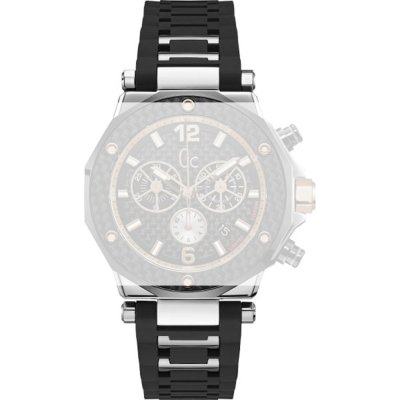 Ce bracelet de montre GCest fait de caoutchouc / Silicone et est attaché à la montre au moyen de vis de selle. Le bracelet a une taille de 22 mm et se ferme au moyen d'un boucle. Le bracelet n'a pas de support droit, ce qui signifie que ce bracelet convient uniquement aux montres énumérées ci-dessous.
