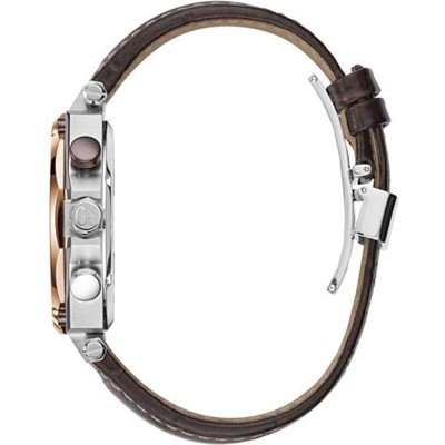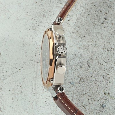 Cette montre GC a un boîtier Inox 44.5 mm en diamètre et est équipée d'un bracelet cuir. Le boîtier contient un mouvement Ronda et la montre est dotée d'un cristal Saphire..