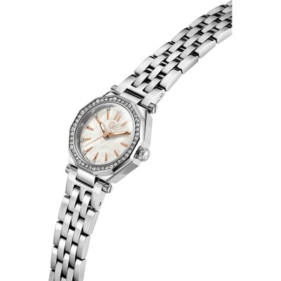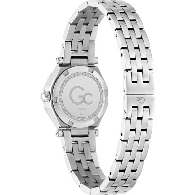 Cette montre GC a un boîtier Inox 26 mm en diamètre et est équipée d'un bracelet Inox. Le boîtier contient un mouvement Ronda et la montre est dotée d'un cristal Minéral enduit saphir..