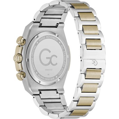 Cette montre GC a un boîtier Inox 45 mm en diamètre et est équipée d'un bracelet Inox. Le boîtier contient un mouvement et la montre est dotée d'un cristal Saphire..
