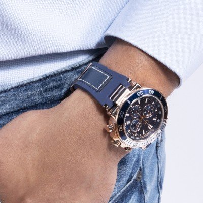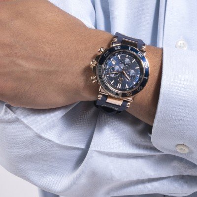 Cette montre GC a un boîtier Inox 44 mm en diamètre et est équipée d'un bracelet caoutchouc. Le boîtier contient un mouvement Ronda et la montre est dotée d'un cristal Minéral enduit saphir..