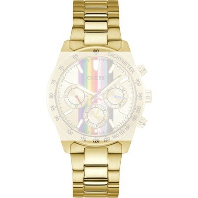 Ce bracelet de montre Guessest fait de acier inoxydable et est attaché à la montre au moyen de Épingles à ressort. Le bracelet a une taille de 22 mm et se ferme au moyen d'un boucle de déploiement avec sécurité. Le bracelet n'a pas de support droit, ce qui signifie que ce bracelet convient uniquement aux montres énumérées ci-dessous.