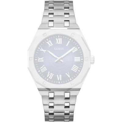 Ce bracelet de montre Guessest fait de acier inoxydable et est attaché à la montre au moyen de Épingles à ressort. Le bracelet a une taille de 24 mm et se ferme au moyen d'un boucle déployante avec boutons poussoirs. Le bracelet n'a pas de support droit, ce qui signifie que ce bracelet convient uniquement aux montres énumérées ci-dessous.