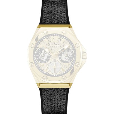 Ce bracelet de montre Guessest fait de silicone et est attaché à la montre au moyen de Épingles à ressort. Le bracelet a une taille de 23 mm et se ferme au moyen d'un boucle. Le bracelet n'a pas de support droit, ce qui signifie que ce bracelet convient uniquement aux montres énumérées ci-dessous.