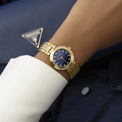 Cette montre Guess a un boîtier Inox 28 mm en diamètre et est équipée d'un bracelet Inox. Le boîtier contient un mouvement Seiko et la montre est dotée d'un cristal Minéral..