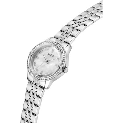 Cette montre Guess a un boîtier Inox 32 mm en diamètre et est équipée d'un bracelet Inox. Le boîtier contient un mouvement Seiko et la montre est dotée d'un cristal Minéral..