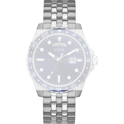 Ce bracelet de montre Guessest fait de métal et est attaché à la montre au moyen de Épingles à ressort. Le bracelet a une taille de 22 mm et se ferme au moyen d'un boucle déployante avec boutons poussoirs. Le bracelet n'a pas de support droit, ce qui signifie que ce bracelet convient uniquement aux montres énumérées ci-dessous.
