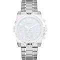 Ce bracelet de montre Guessest fait de acier inoxydable et est attaché à la montre au moyen de Épingles à ressort. Le bracelet a une taille de 24 mm et se ferme au moyen d'un boucle déployante avec boutons poussoirs. Le bracelet n'a pas de support droit, ce qui signifie que ce bracelet convient uniquement aux montres énumérées ci-dessous.