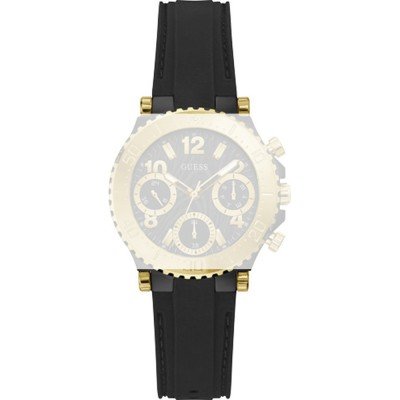 Ce bracelet de montre Guessest fait de silicone et est attaché à la montre au moyen de vis de selle. Le bracelet a une taille de 18 mm et se ferme au moyen d'un boucle. Le bracelet n'a pas de support droit, ce qui signifie que ce bracelet convient uniquement aux montres énumérées ci-dessous.