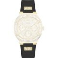 Ce bracelet de montre Guessest fait de silicone et est attaché à la montre au moyen de goupilles en acier. Le bracelet a une taille de 22 mm et se ferme au moyen d'un boucle. Le bracelet n'a pas de support droit, ce qui signifie que ce bracelet convient uniquement aux montres énumérées ci-dessous.