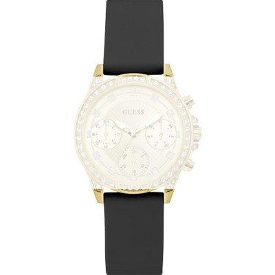 Ce bracelet de montre Guessest fait de silicone et est attaché à la montre au moyen de Épingles à ressort. Le bracelet a une taille de 18 mm et se ferme au moyen d'un boucle. Le bracelet est doté d'une monture droite, ce qui signifie qu'il convient à toutes les montres de la Guess dotées d'une monture droite..