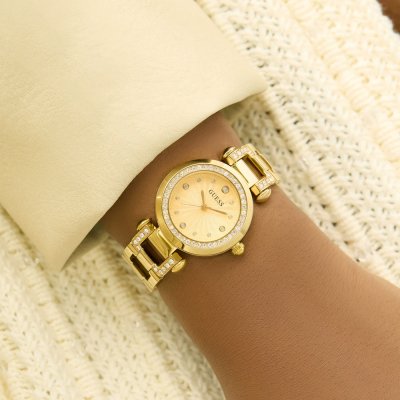 Cette montre Guess a un boîtier Inox 30 mm en diamètre et est équipée d'un bracelet Inox. Le boîtier contient un mouvement Seiko et la montre est dotée d'un cristal Minéral..