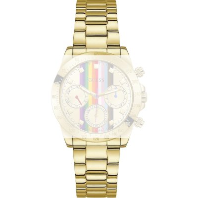 Ce bracelet de montre Guessest fait de acier inoxydable et est attaché à la montre au moyen de Épingles à ressort. Le bracelet a une taille de 20 mm et se ferme au moyen d'un boucle de déploiement avec sécurité. Le bracelet est doté d'une monture droite, ce qui signifie qu'il convient à toutes les montres de la Guess dotées d'une monture droite..