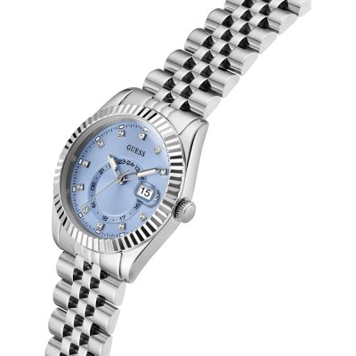 Cette montre Guess a un boîtier Inox 34 mm en diamètre et est équipée d'un bracelet Inox. Le boîtier contient un mouvement Seiko Instruments Inc. et la montre est dotée d'un cristal Minéral..