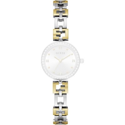 Ce bracelet de montre Guessest fait de acier inoxydable et est attaché à la montre au moyen de goupilles en acier. Le bracelet a une taille de 10 mm et se ferme au moyen d'un fermoir bijoux. Le bracelet n'a pas de support droit, ce qui signifie que ce bracelet convient uniquement aux montres énumérées ci-dessous.