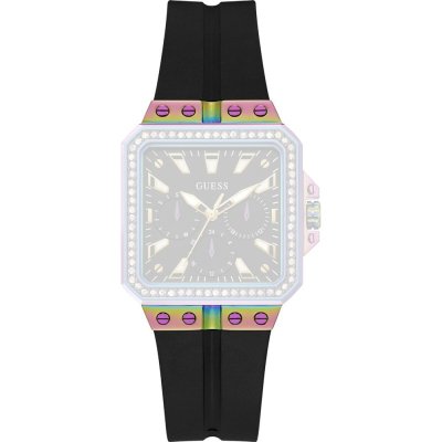 Ce bracelet de montre Guessest fait de silicone et est attaché à la montre au moyen de Épingles à ressort. Le bracelet a une taille de 22 mm et se ferme au moyen d'un boucle. Le bracelet n'a pas de support droit, ce qui signifie que ce bracelet convient uniquement aux montres énumérées ci-dessous.