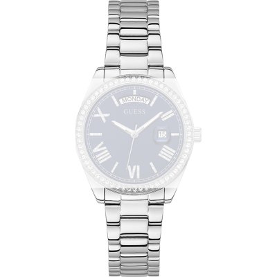 Ce bracelet de montre Guessest fait de acier inoxydable et est attaché à la montre au moyen de Épingles à ressort. Le bracelet a une taille de 18 mm et se ferme au moyen d'un boucle déployante avec boutons poussoirs. Le bracelet n'a pas de support droit, ce qui signifie que ce bracelet convient uniquement aux montres énumérées ci-dessous.