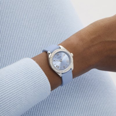 Cette montre Guess a un boîtier Inox 30 mm en diamètre et est équipée d'un bracelet caoutchouc. Le boîtier contient un mouvement Seiko et la montre est dotée d'un cristal Minéral..
