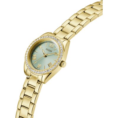 Cette montre Guess a un boîtier Inox 30 mm en diamètre et est équipée d'un bracelet Inox. Le boîtier contient un mouvement Seiko et la montre est dotée d'un cristal Minéral..