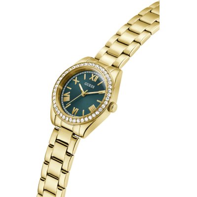 Cette montre Guess a un boîtier Inox 30 mm en diamètre et est équipée d'un bracelet Inox. Le boîtier contient un mouvement Seiko et la montre est dotée d'un cristal Minéral..