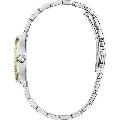 Cette montre Guess a un boîtier Inox 30 mm en diamètre et est équipée d'un bracelet Inox. Le boîtier contient un mouvement Seiko et la montre est dotée d'un cristal Minéral..