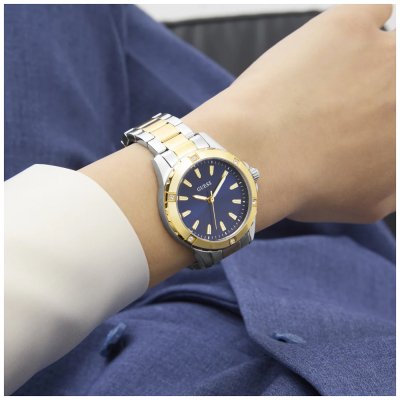 Cette montre Guess a un boîtier Inox 35 mm en diamètre et est équipée d'un bracelet Inox. Le boîtier contient un mouvement Seiko et la montre est dotée d'un cristal Minéral..