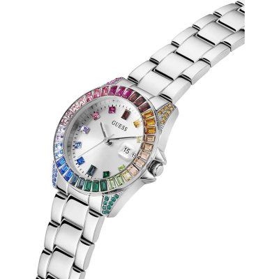 Cette montre Guess a un boîtier Inox 34 mm en diamètre et est équipée d'un bracelet Inox. Le boîtier contient un mouvement Seiko Instruments Inc. et la montre est dotée d'un cristal Minéral..