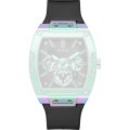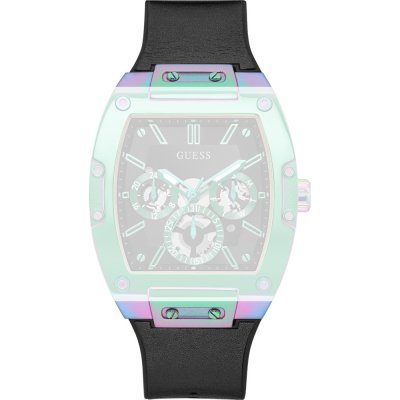Ce bracelet de montre Guessest fait de silicone et est attaché à la montre au moyen de Épingles à ressort. Le bracelet a une taille de 27.5 mm et se ferme au moyen d'un boucle. Le bracelet n'a pas de support droit, ce qui signifie que ce bracelet convient uniquement aux montres énumérées ci-dessous.