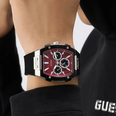 Cette montre Guess a un boîtier Inox 43 mm en diamètre et est équipée d'un bracelet caoutchouc. Le boîtier contient un mouvement Seiko Instruments Inc. et la montre est dotée d'un cristal Minéral..