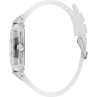 Cette montre Guess a un boîtier Inox 43 mm en diamètre et est équipée d'un bracelet caoutchouc.