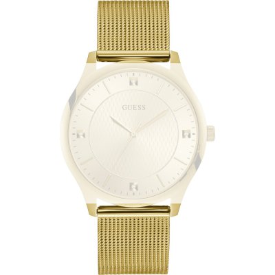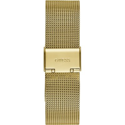 Ce bracelet de montre Guessest fait de acier inoxydable et est attaché à la montre au moyen de Épingles à ressort. Le bracelet a une taille de 22 mm et se ferme au moyen d'un fermoir milanais. Le bracelet est doté d'une monture droite, ce qui signifie qu'il convient à toutes les montres de la Guess dotées d'une monture droite..