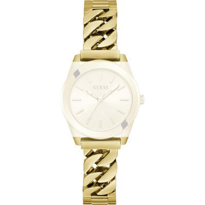 Ce bracelet de montre Guessest fait de acier inoxydable et est attaché à la montre au moyen de Épingles à ressort. Le bracelet a une taille de 16 mm et se ferme au moyen d'un fermoir bijoux. Le bracelet est doté d'une monture droite, ce qui signifie qu'il convient à toutes les montres de la Guess dotées d'une monture droite..