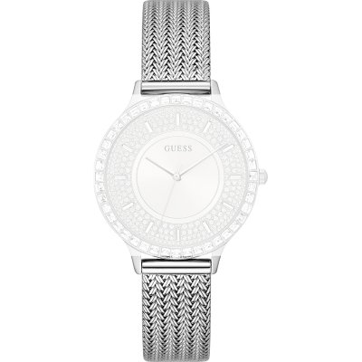 Ce bracelet de montre Guessest fait de acier inoxydable et est attaché à la montre au moyen de Épingles à ressort. Le bracelet a une taille de 16 mm et se ferme au moyen d'un fermoir milanais. Le bracelet est doté d'une monture droite, ce qui signifie qu'il convient à toutes les montres de la Guess dotées d'une monture droite..