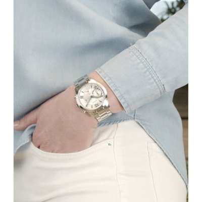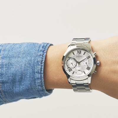 Cette montre Guess a un boîtier Inox 40 mm en diamètre et est équipée d'un bracelet Inox. Le boîtier contient un mouvement Seiko Instruments Inc. et la montre est dotée d'un cristal Minéral..