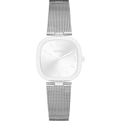 Ce bracelet de montre Guessest fait de métal et est attaché à la montre au moyen de goupilles en acier. Le bracelet n'a pas de support droit, ce qui signifie que ce bracelet convient uniquement aux montres énumérées ci-dessous.